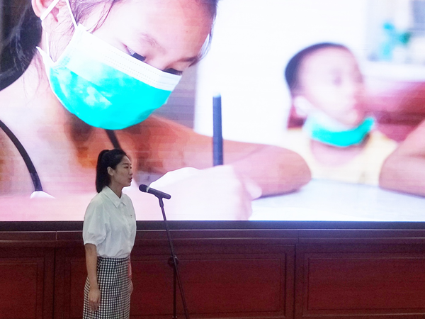 “這是一群無形而又特別的抗疫者,沒有請(qǐng)戰(zhàn)書,沒有紅手印,沒有被表彰,甚至連幾張抗疫的照片都沒有。但是他們的袋子里總懷揣著厚厚的清單,今天是658張”“ 新的路上,是團(tuán)結(jié)一心、英勇無畏的抗疫精神,也是發(fā)展為上、民生為本的弘湘力量!”比賽現(xiàn)場(chǎng),黃雅婷緊緊圍繞弘湘戰(zhàn)“疫”這一主題,講述了一個(gè)個(gè)發(fā)生在弘湘抗疫的感人故事。作為比賽第一位出場(chǎng)的她以真摯的情感、極富感染力的宣講方式以及自然樸實(shí)流暢的語(yǔ)言,將“第658份清單”的弘湘戰(zhàn)疫的故事聲情并茂地呈現(xiàn)在各位評(píng)委和觀眾面前,用真人、真事、真情表達(dá)弘湘人在抗疫戰(zhàn)斗中的不畏困難、勇于擔(dān)當(dāng),展現(xiàn)了弘湘集團(tuán)全體黨員干部在疫情防控中團(tuán)結(jié)一心,勇往直前的精神風(fēng)貌。
