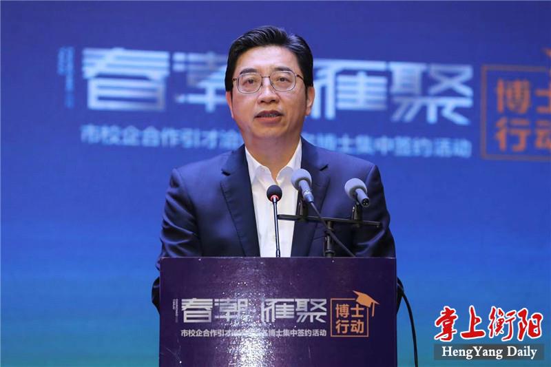 4月29日上午,“春潮·雁聚”博士行動(dòng)——市校企合作引才洽談暨百名博士集中簽約活動(dòng)在衡舉行,市委書記鄧群策在簽約儀式上向五湖四海的人才發(fā)出誠摯邀請(qǐng),期望各位才俊用所學(xué)所得的智慧之光,照亮深入推進(jìn)“一體兩翼”建設(shè)的騰飛之城,在衡陽這片高質(zhì)量發(fā)展的熱土上成就輝煌事業(yè)、書寫精彩人生。市委副書記、市長朱健主持簽約儀式。