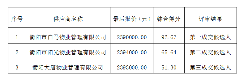 成交供應(yīng)商名稱(chēng):衡陽(yáng)市白馬物業(yè)管理有限公司
