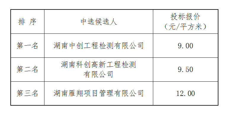 房屋建筑安全隱患專項整治檢測工程于2022年8月15日上午9時00分(北京時間)進行了比選開標、評標活動,評標委員會按照比選文件規(guī)定的評標辦法及原則進行評定,推薦中選候選人排名如下: