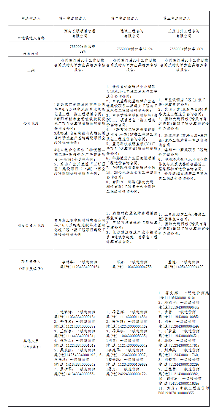 動力電池標準廠房及公共服務配套設施建設項目一期項目造價咨詢審核(復審)服務單位內部比選中選候選人公示