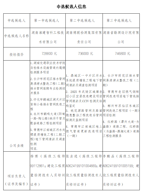 衡陽(yáng)紡織機(jī)械廠地塊地下管網(wǎng)盲探及檢測(cè)工程公開(kāi)比選中選候選人公示