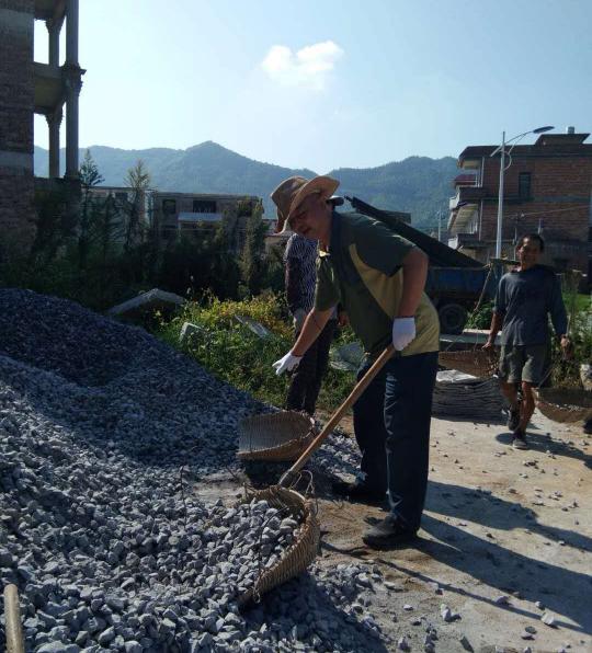 2018年8月20 日早晨8:30的關(guān)市寶新村譚海容家門口,已是一番熱鬧的勞動(dòng)場(chǎng)面,水泥攪拌機(jī)歡快地運(yùn)轉(zhuǎn)著,人們?cè)谙娜盏某?yáng)下?lián)]汗如雨,有條不紊地對(duì)門口的地面進(jìn)行找平、水泥硬化,原來(lái)這是弘信公司的全體員工對(duì)貧困戶譚海容家的一次集體扶貧活動(dòng)。他的老母親80多歲了,眼睛視線不好,家里因?yàn)樨毨?,屋里和門口的地面凹凸不平,為防止老人意外摔倒,大家集體策劃了此次扶貧活動(dòng)。